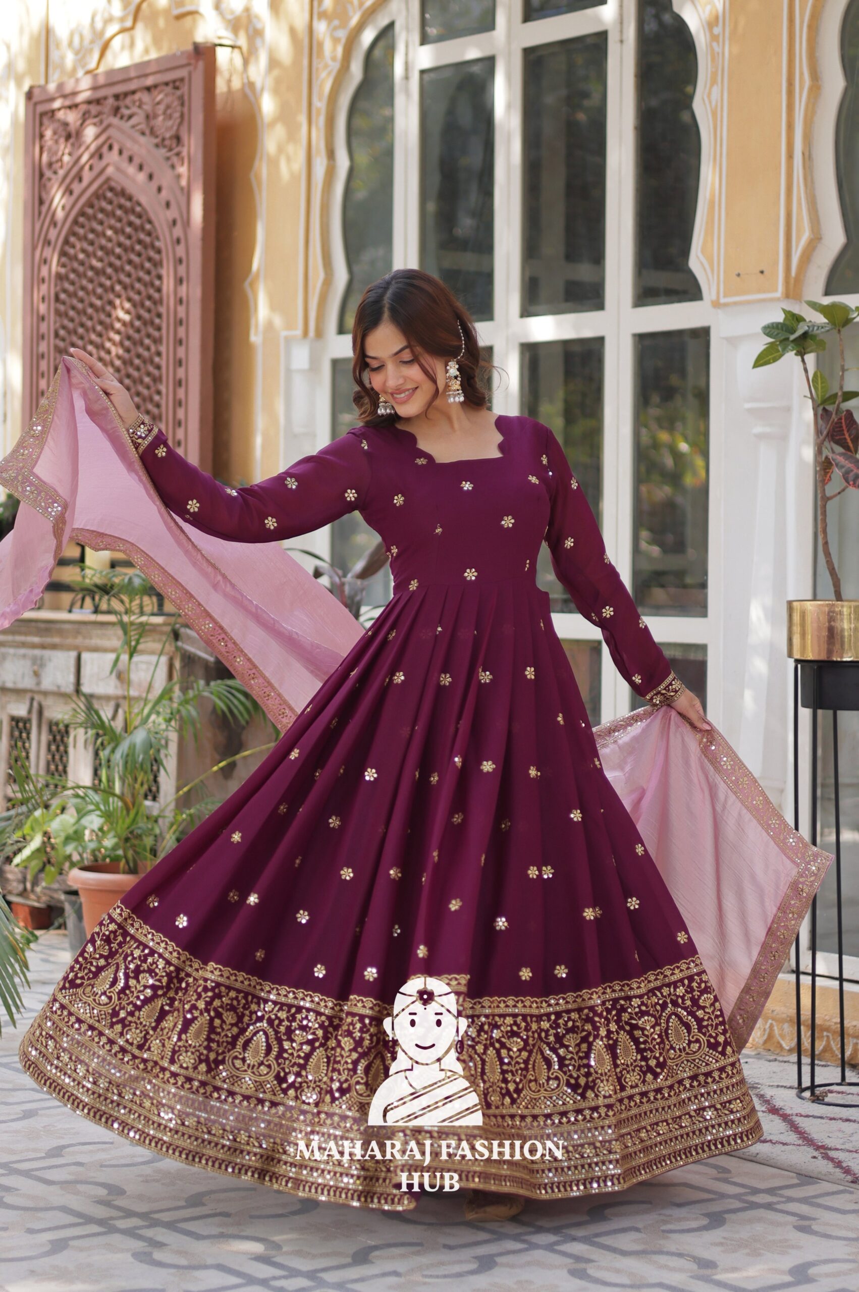 π§΅ Full-Sleeve Gown in Star Georgette with Fancy Finish – Special Designer Gown